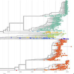 This website aims to provide a real-time snapshot of evolving pathogen populations and to provide interactive data visualizations to virologists, epidemiologists, public health officials and citizen scientists. Through interactive data visualizations, we aim to allow exploration of continually up-to-date datasets, providing a novel surveillance tool to the scientific and public health communities.